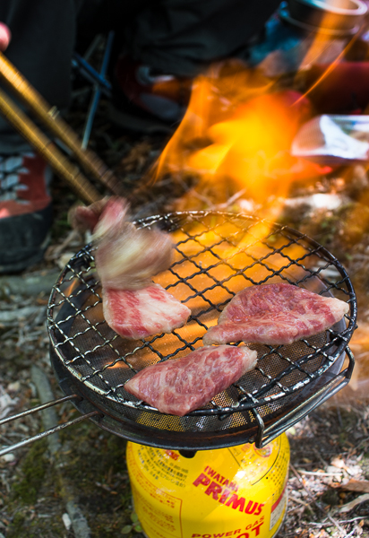 もちろん超霜降りなゴージャス伊賀牛をファイヤー