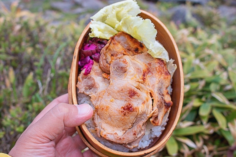 まげわっぱで食べると、下の米もおいしそうです。
