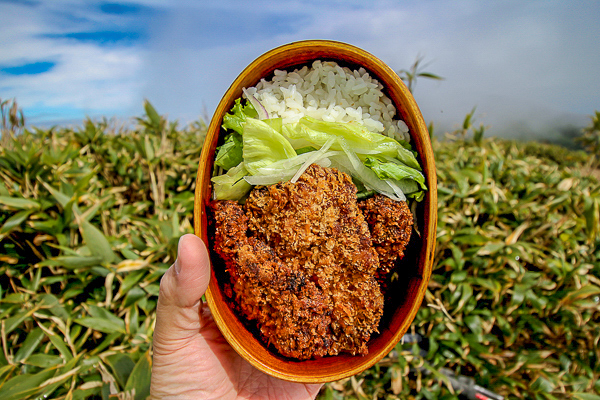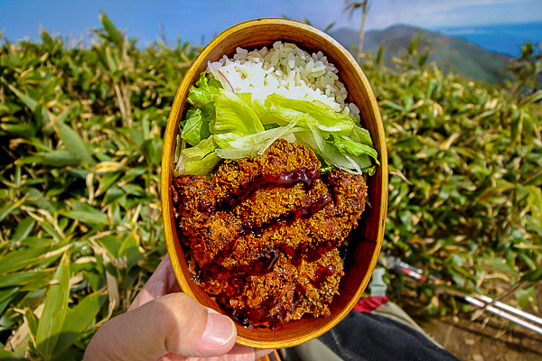 よーっし、山にトンカツ持ってて食べるぞ