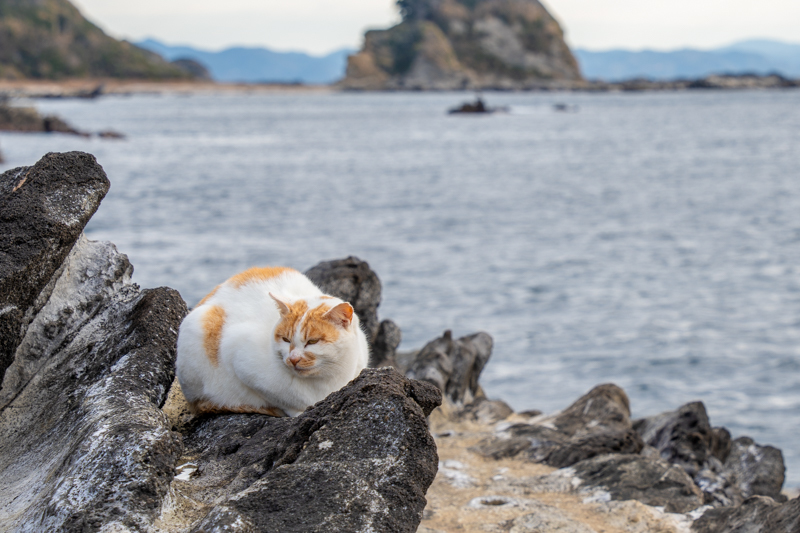 奇岩と岩礁を歩き、ときに釣り人の釣果を覗き、ときに猫のご機嫌を伺い