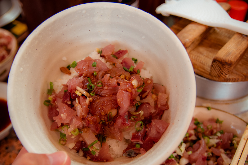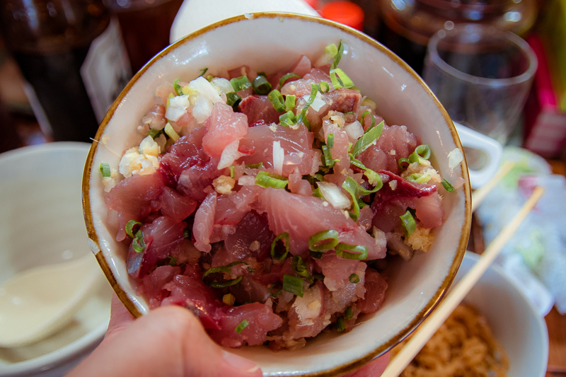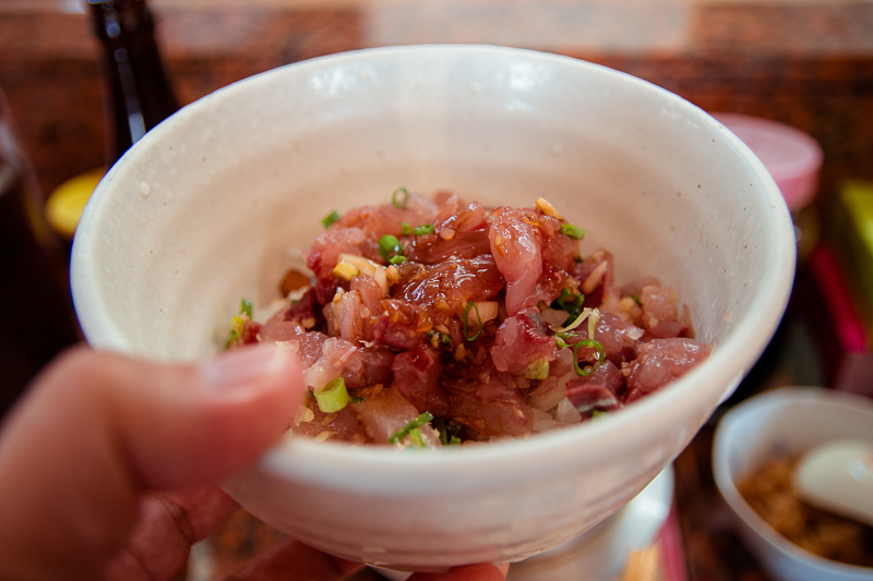 これを、丼に好きなだけ入れて、鰺のたたきをON
