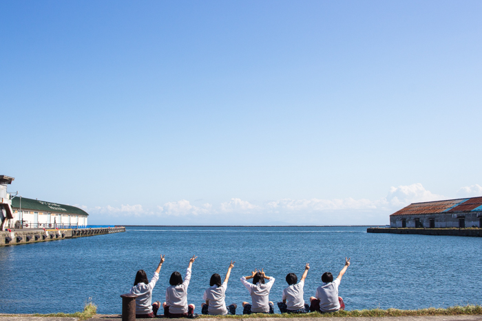 「うちらー、今ぁ、小樽に来とるけんねーっ!」