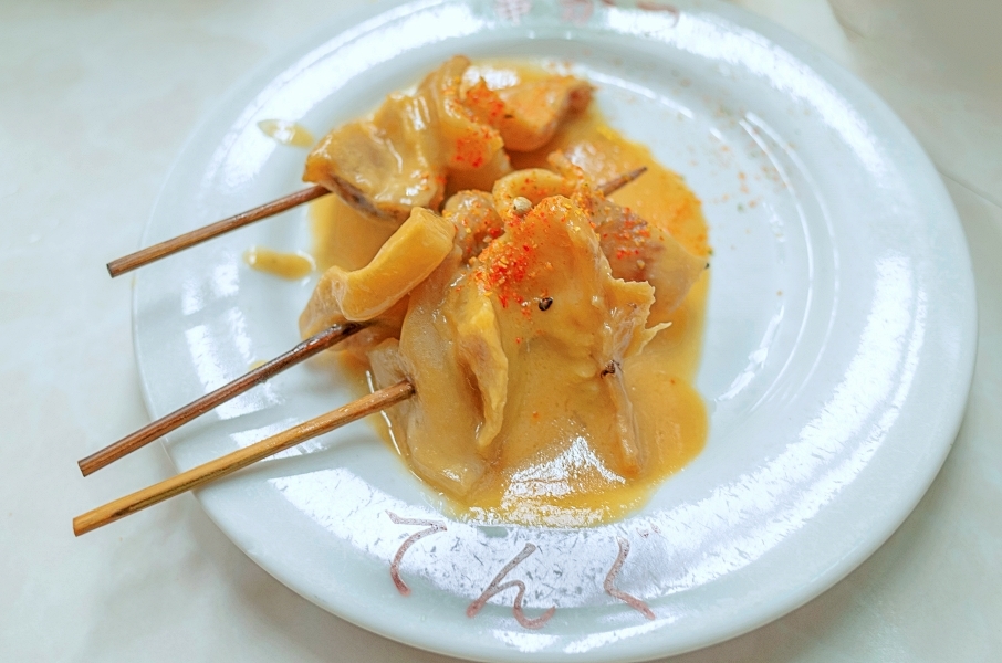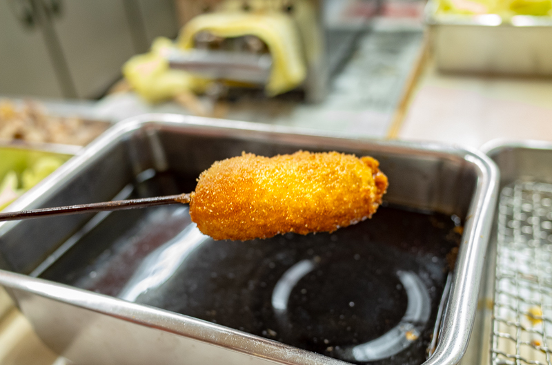 するとオヤジ、揚げ手に向かって一言「クシカツ2本!」
