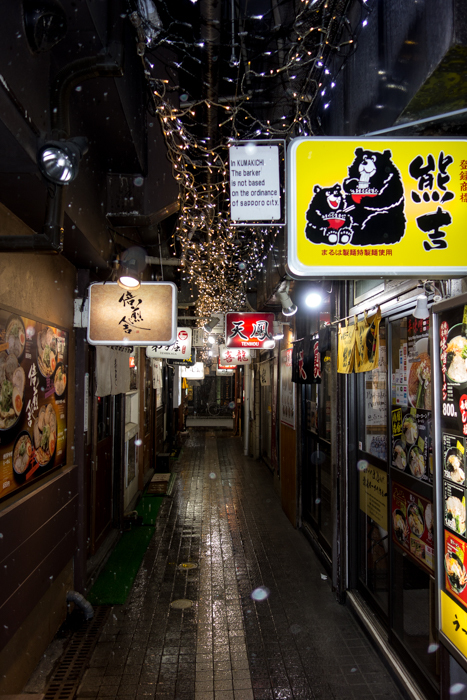 雪の中を、ラーメン横丁に逃げ込むように入ると