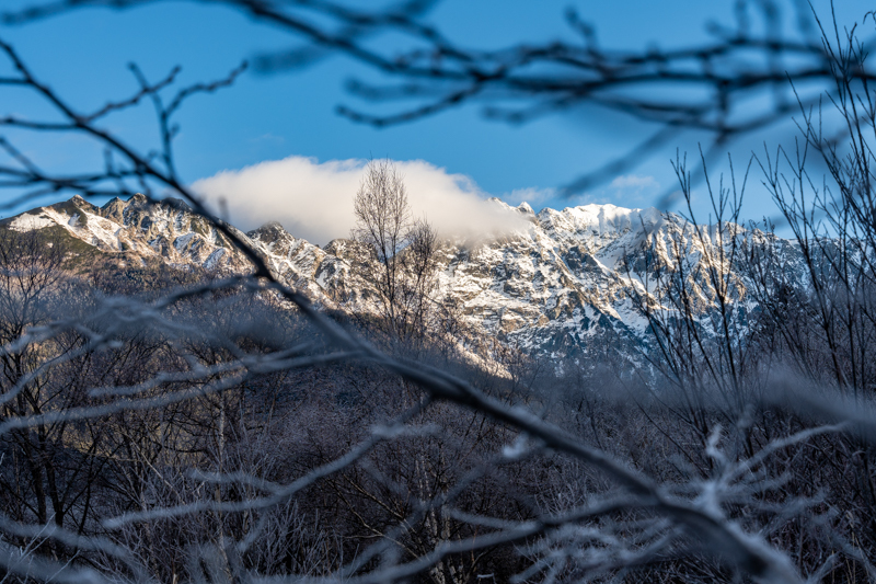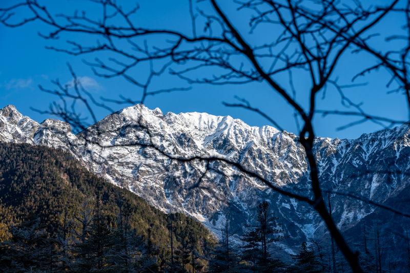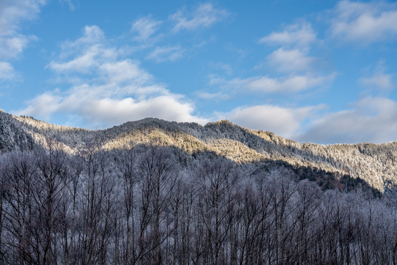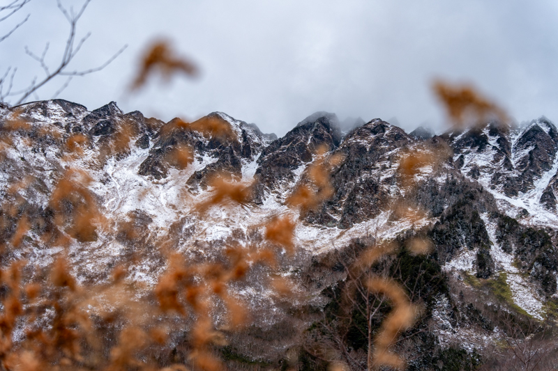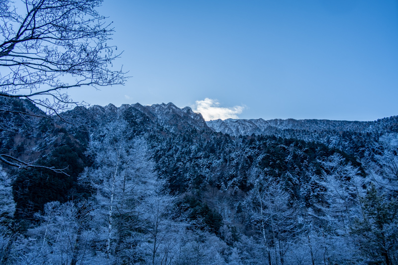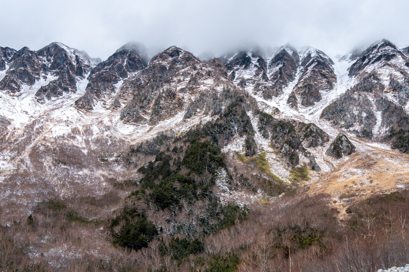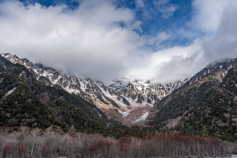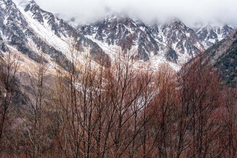 誰もいない静けさの中、穂高から降りて来る雪雲に包まれて