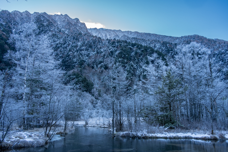 ぴんっと張り詰めた空気の大正池を離れると
