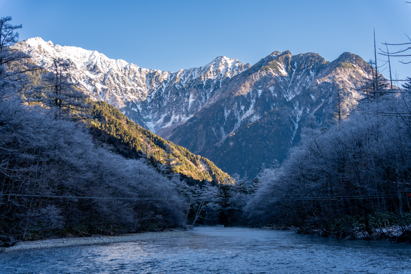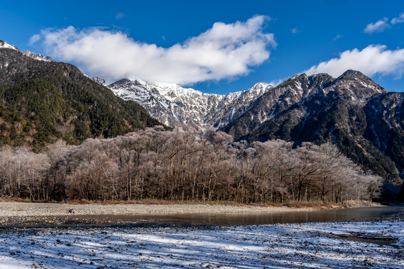 河原から見上げる、それだけで穂高はいつもよりも大きく、いつもより厳か
