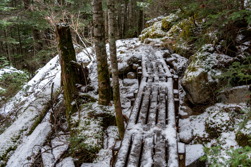 足元の木道はつるっつるで危険、慎重に歩いていると雲行きが怪しくなって来た