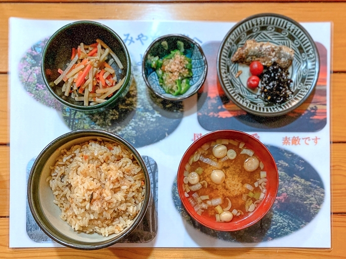 朝食は、炊き込みご飯、お味噌汁が美味しくてお代わり