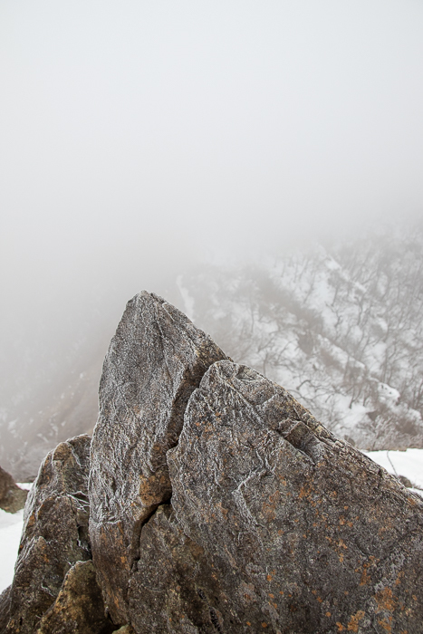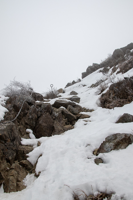 鬼ケ岩ノ頭の岩場、ここで既に鎖が凍て付き