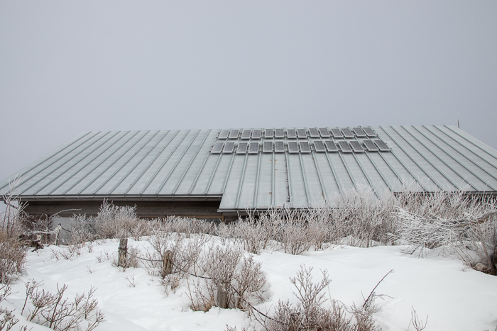 すぐにチェーンスパイクを脱ぐと小屋に逃げ込み