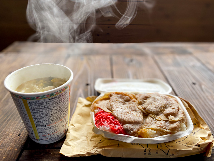 温かなスープと美味しいお弁当で、しばし、ほっとする