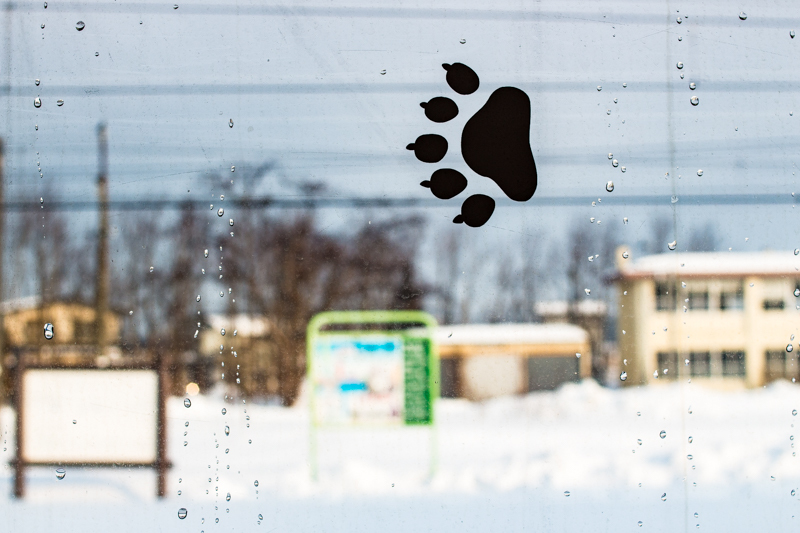 窓には、秋田いぬの手形が散り、なんとも微笑ましい