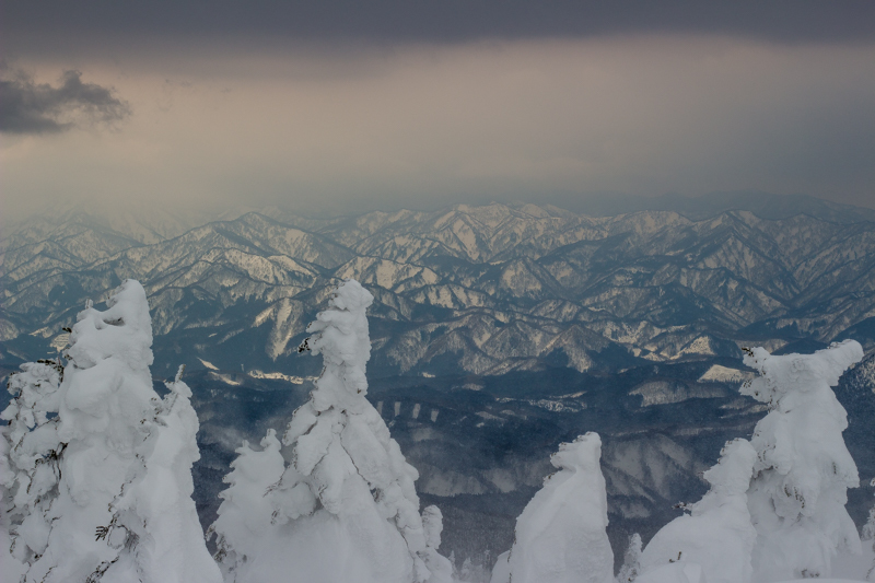 足元に広がる霧氷の森も、怖いほど美しく見とれてる、その刹那