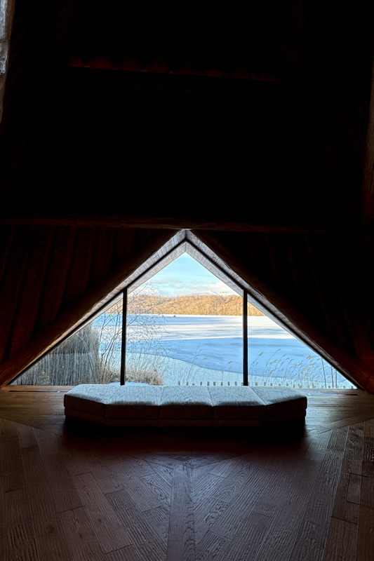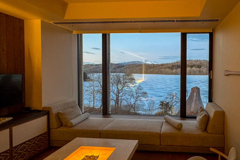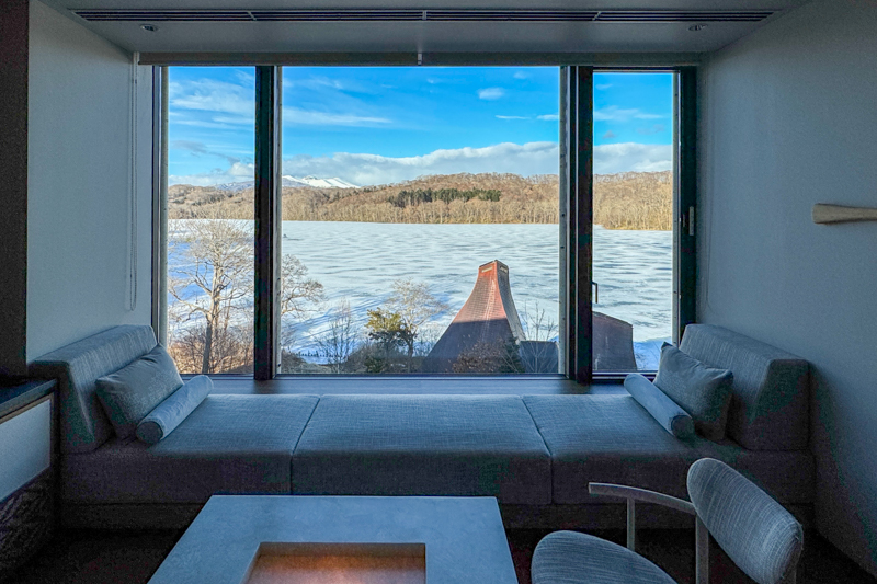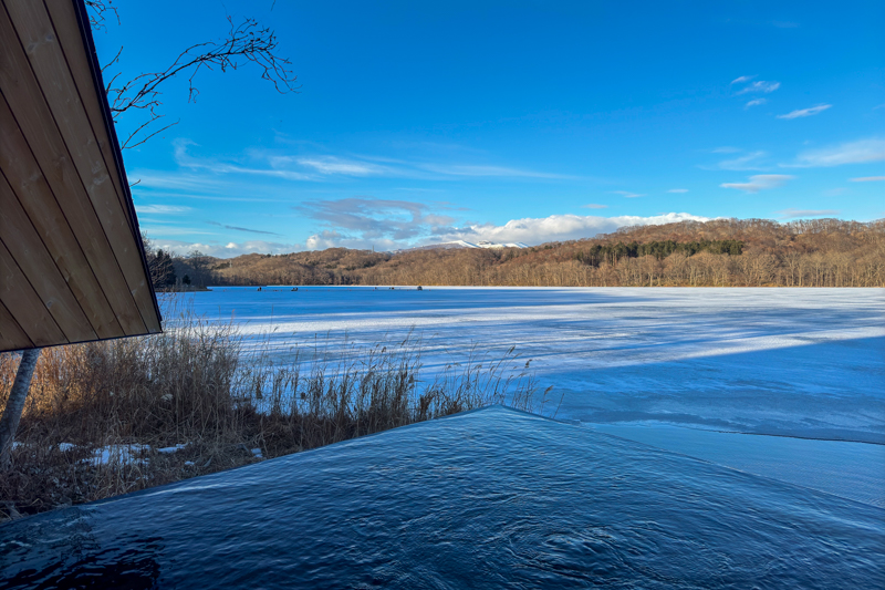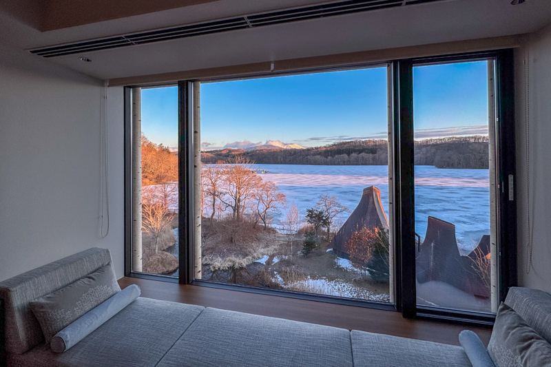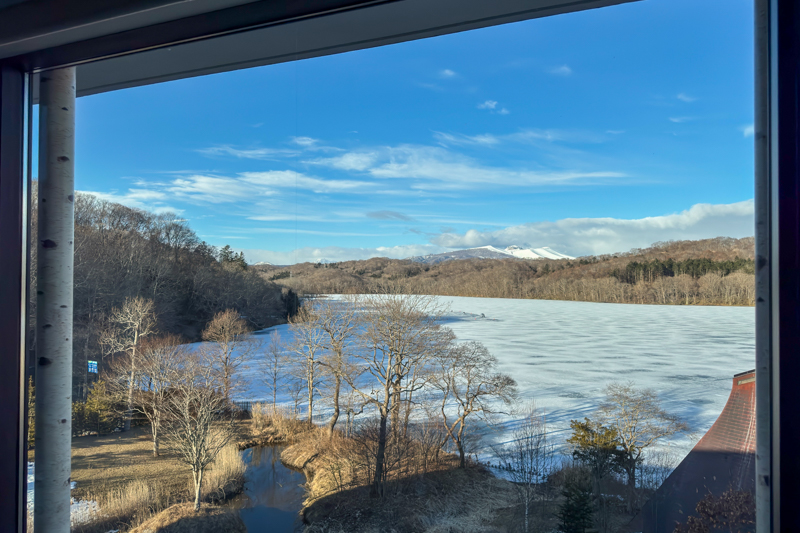 案内された部屋の窓からは、凍ったポロト湖