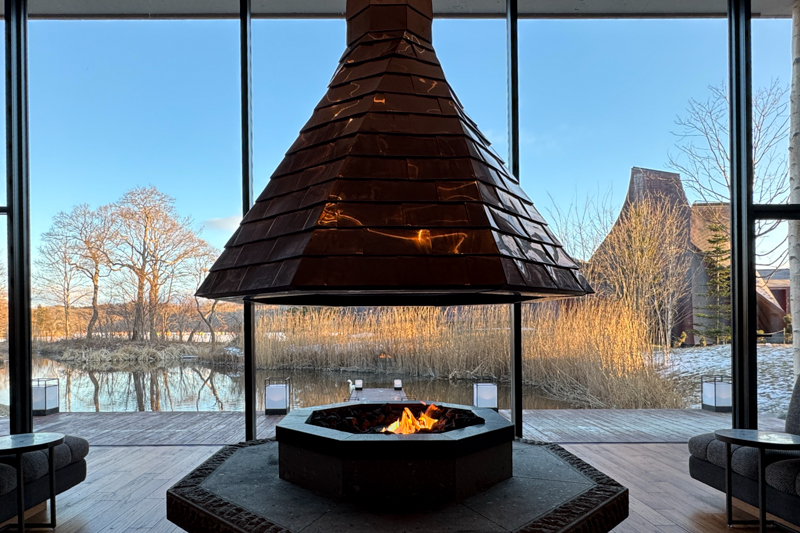 星野リゾートでは象徴のような暖炉に迎えられ