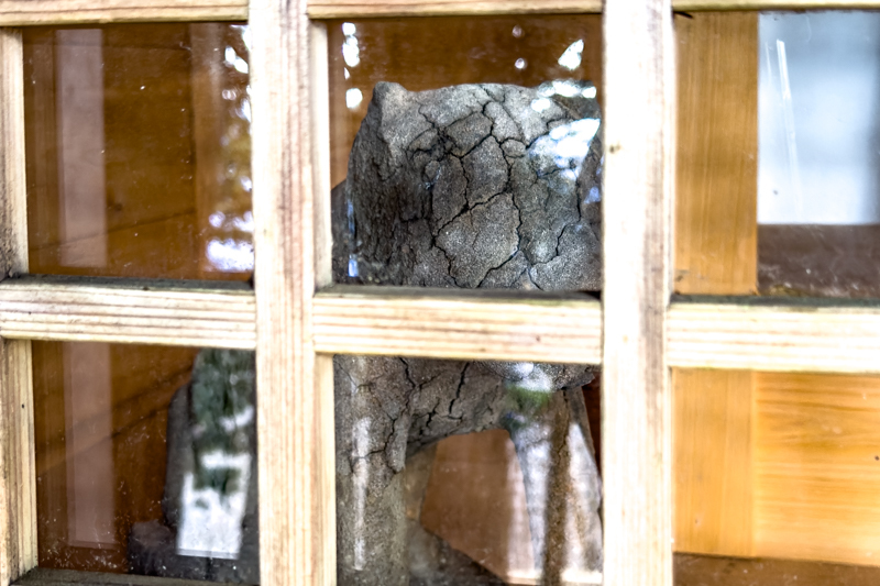 光の加減だろうか、ガラス越の二匹の狼の姿くっきりと見えて