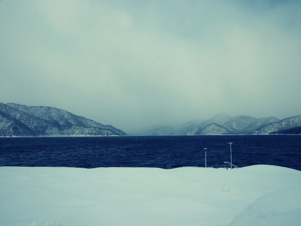 湖畔を立木観音の方に回り込むと、冬の海だ