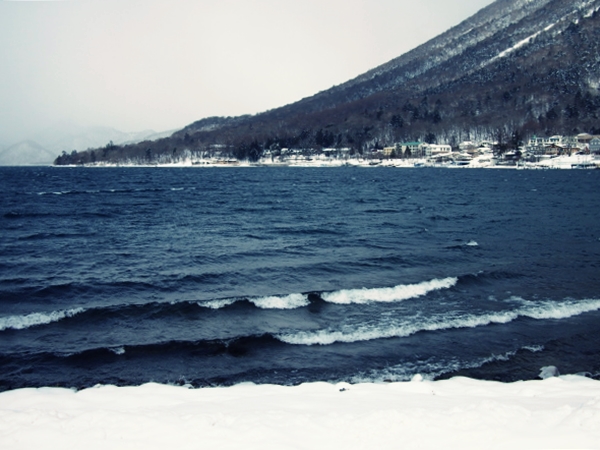 中禅寺湖が白波を立てて荒れている、それはまるで冬の海だ