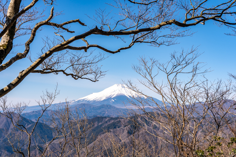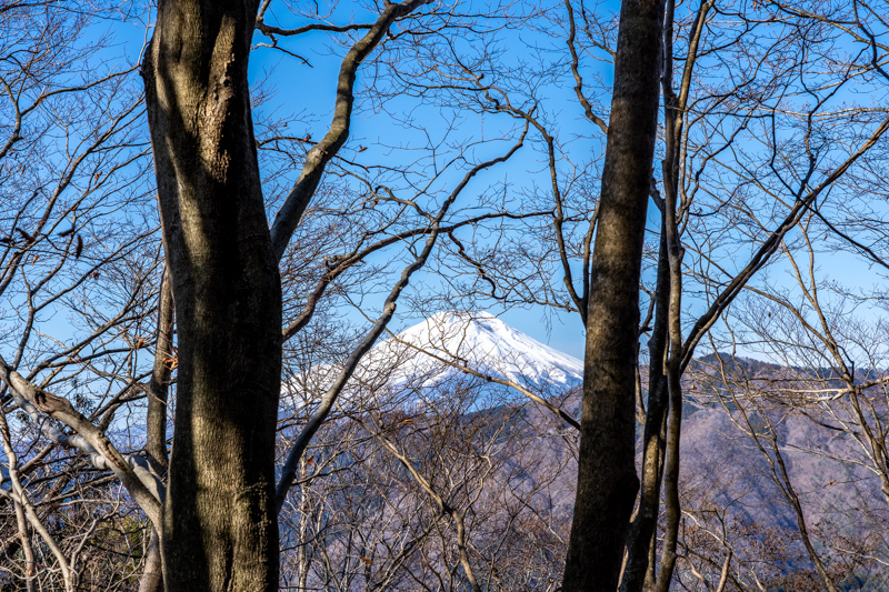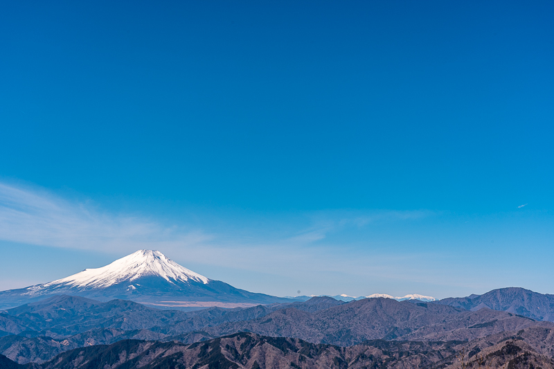 荒い息を吐きながらふと振り返ると冬晴れに浮く富士山