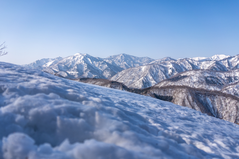 と、すぐに尾根からの展望に脚が止まる、位置的には苗場から佐武流山方向だろうか