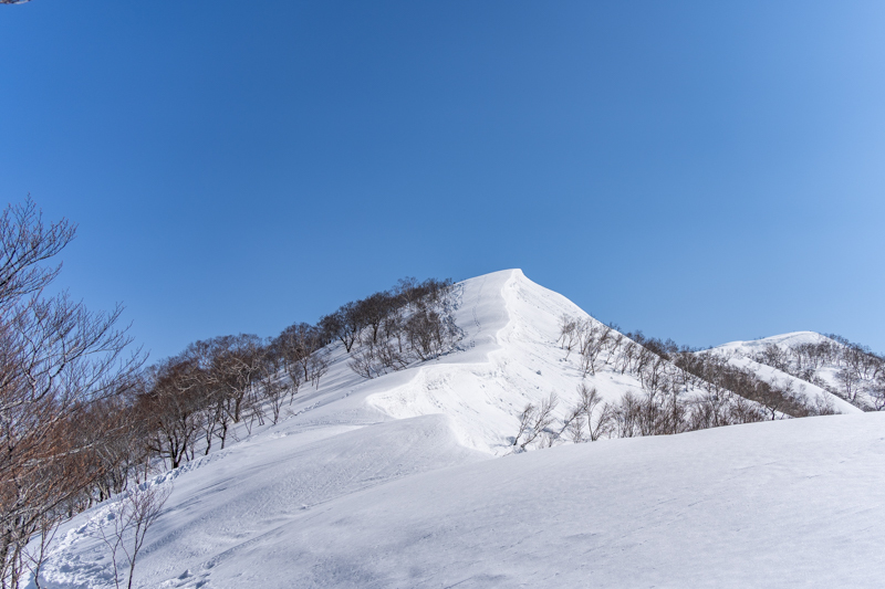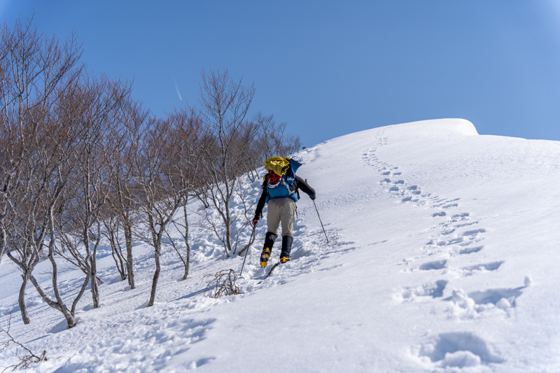 そのピークへ向かって一歩一歩雪を踏みしめる、汗が滴る