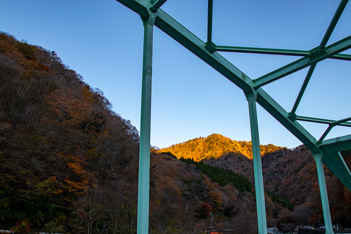 対岸には傾きかけた陽に燃えるような紅葉が残っていた