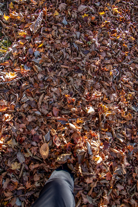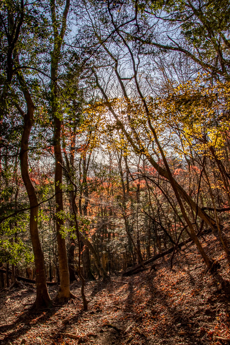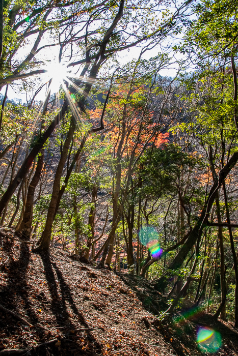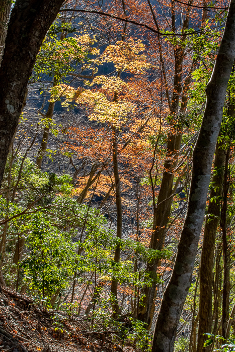 足元の落ち葉は足首オーバーで、ときおり滑ったり、踏み外したり