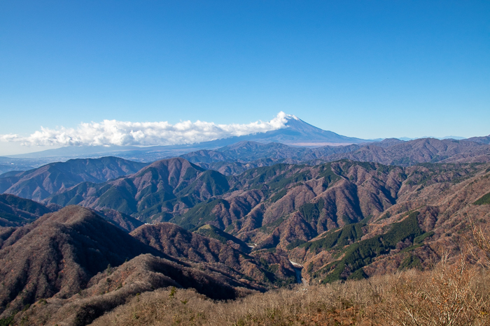 ほぼ一日眺めていた富士山と、静かなる冬枯れの稜線