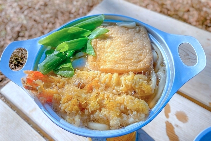 富士山を眺めながらなべ焼きうどんって我ながら贅沢
