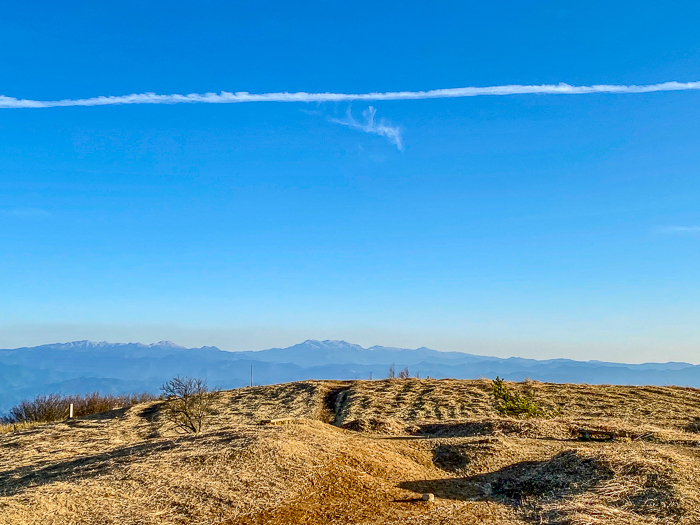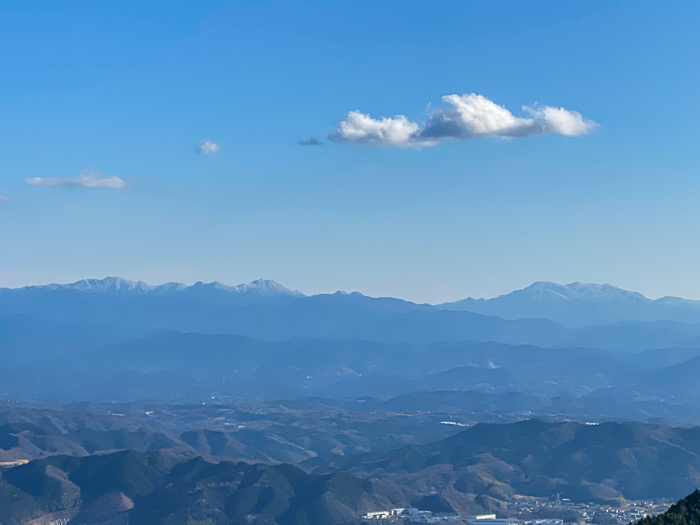 どうだ、この青空、そして遥か南に浮かぶ大峰山系の美しさ