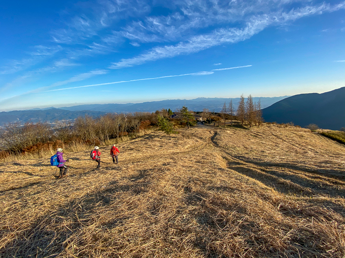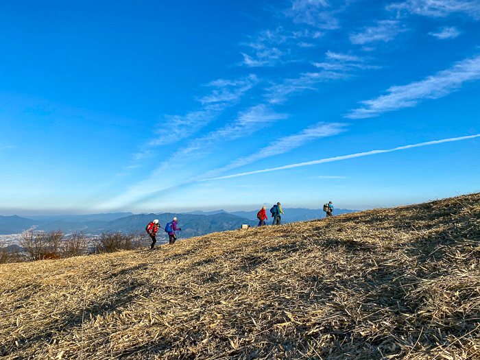 ひと汗かいて、振り返ると、澄んだ冬の空に大峰山系