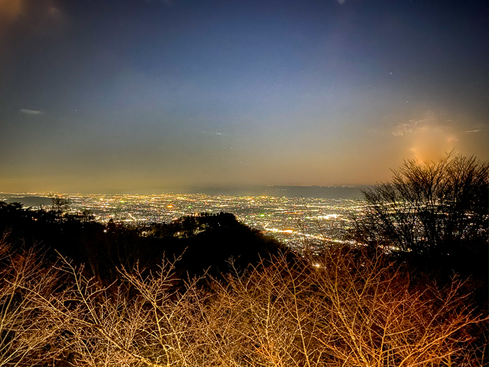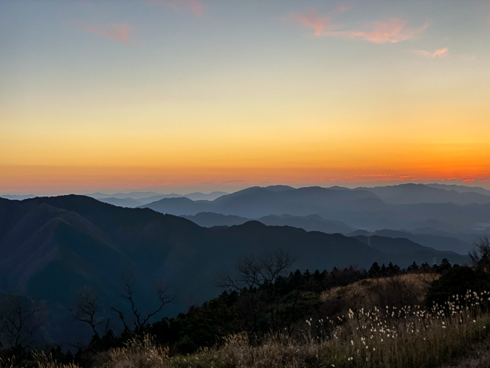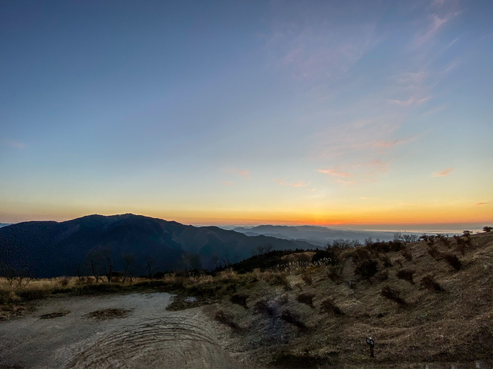 暮れなずむ金剛山のシルエットを肴に食前酒