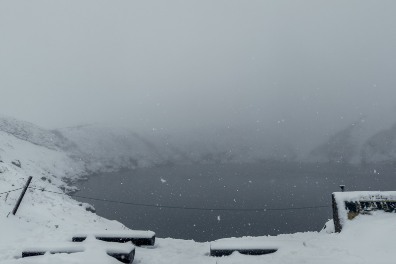 明け方からビュービューと風が唸りはじめ、吹雪になっていた