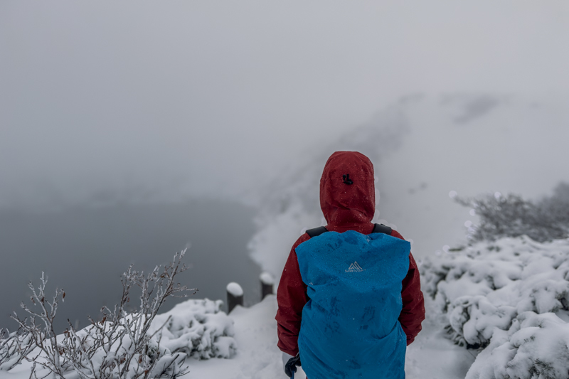 準備をして歩き始めると、みぞれに近かったものが小雪へと変わり