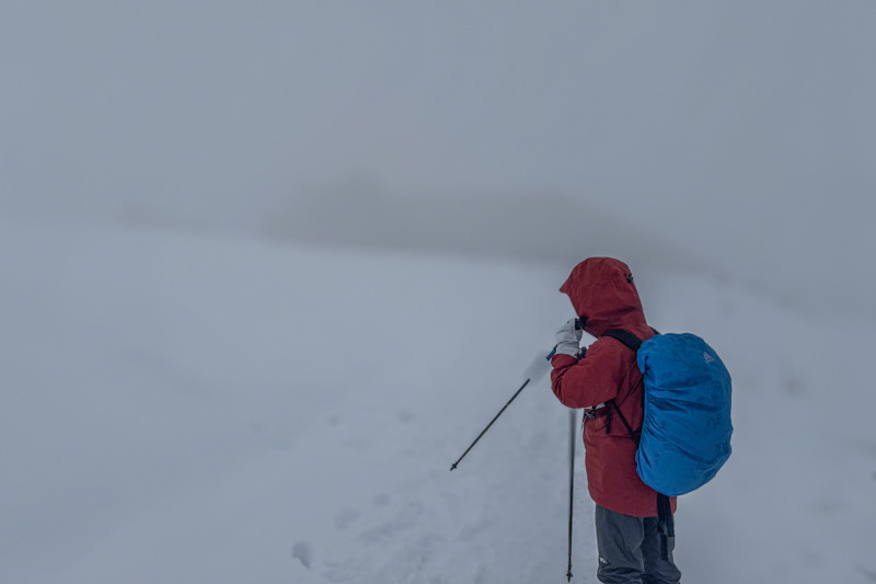ただ俯いて吹雪を遮りながら進む