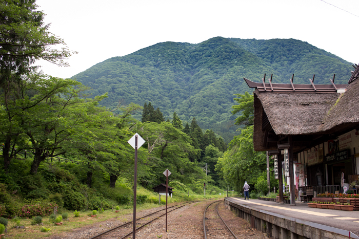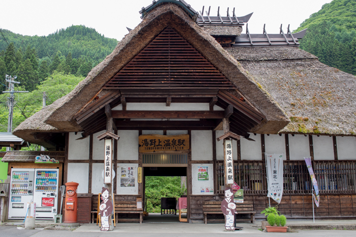 この藁葺き駅舎は、湯の神を護る鳥居だな、なんてことを想いつつ、旅へ