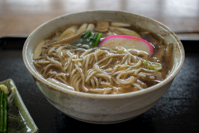 旅の終わりは、街道沿いのお蕎麦屋さんで「地鶏そば」会津産の蕎麦、鶏肉と山菜
