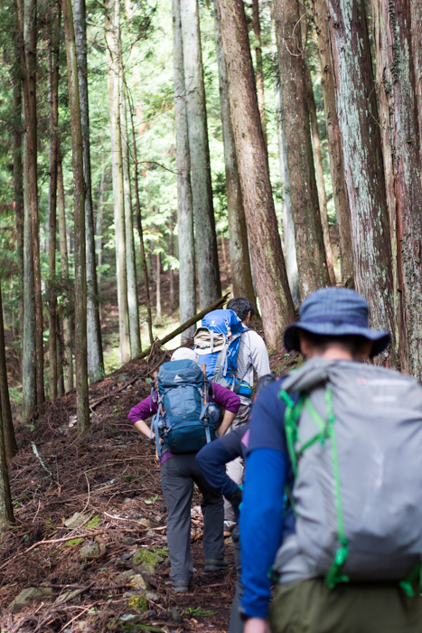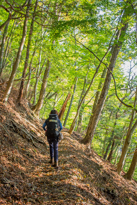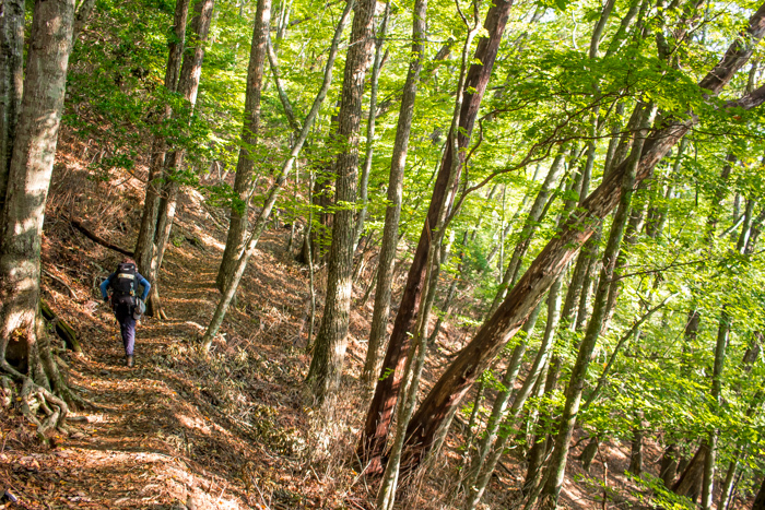静かな森を下り、小さな沢を何度か渡り、尾根を登り返し
