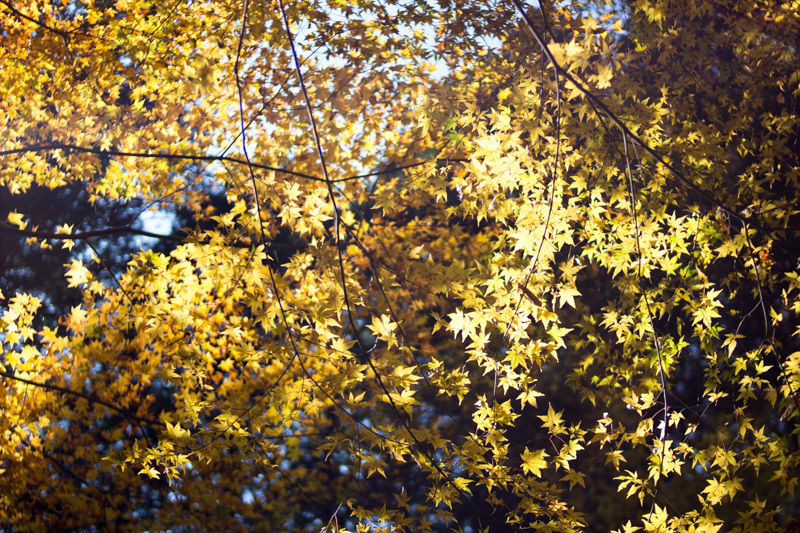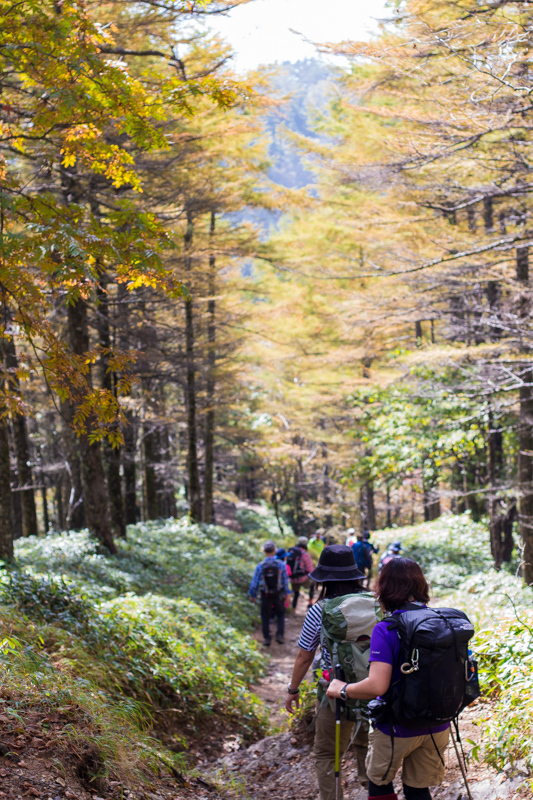 その色付く森を歩き始めて、やっと秋らしさを覚え、つい頬が緩むが