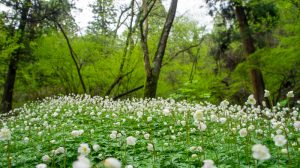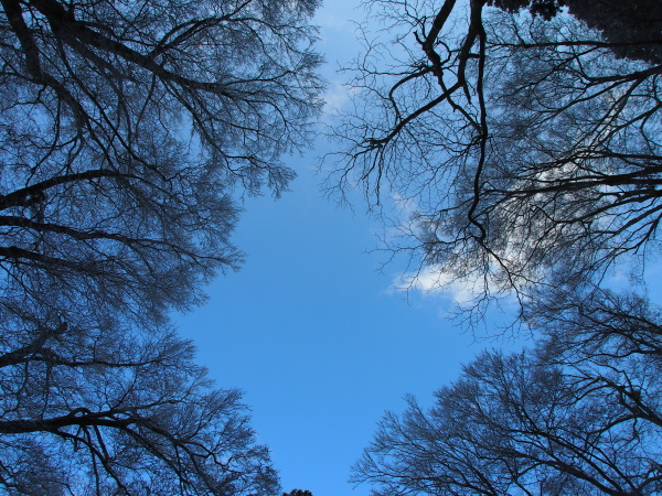 神社から参道を下ったブナ林