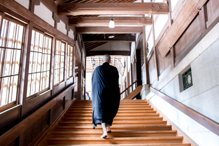 正座から素早く立ち上がり、本尊の前に正座し直す動作を