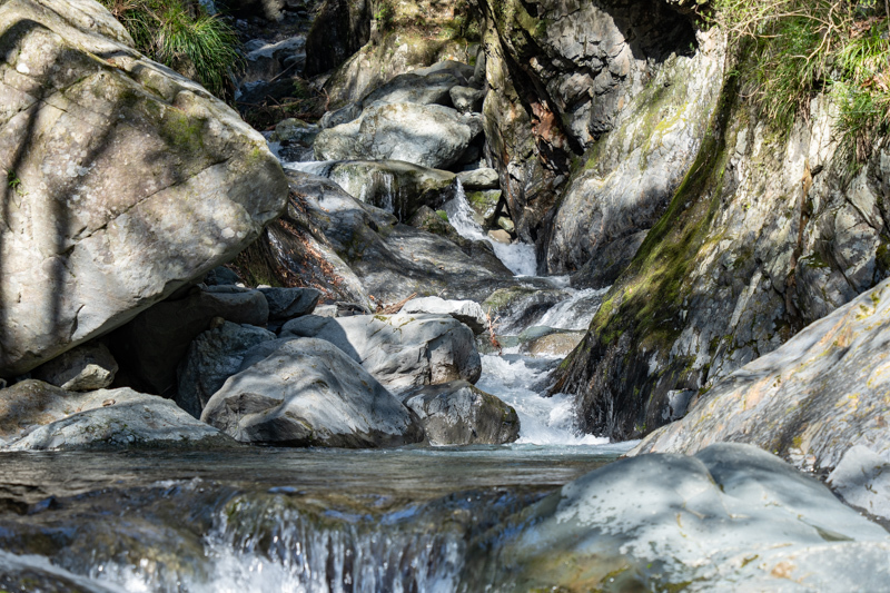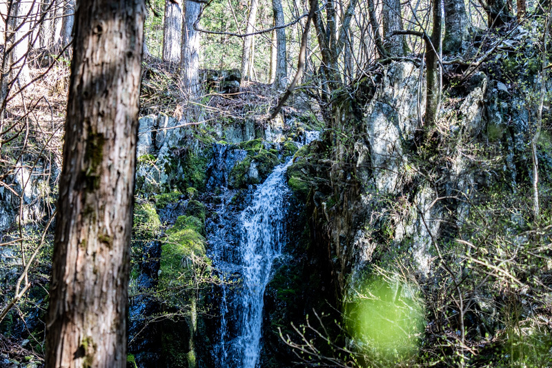 その大岩を右手に反れてすすむと、ちょっとした滝が流れていた