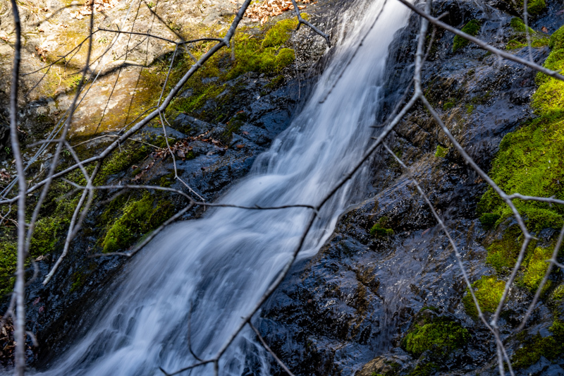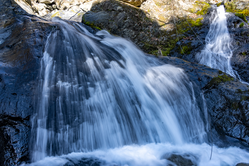 小さな滝でも大きな音でどんどん水が流れ落ちて行く様に見とれてしまう