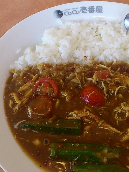 ソースの辛みとオクラ、トマトが何ともマッチしてて