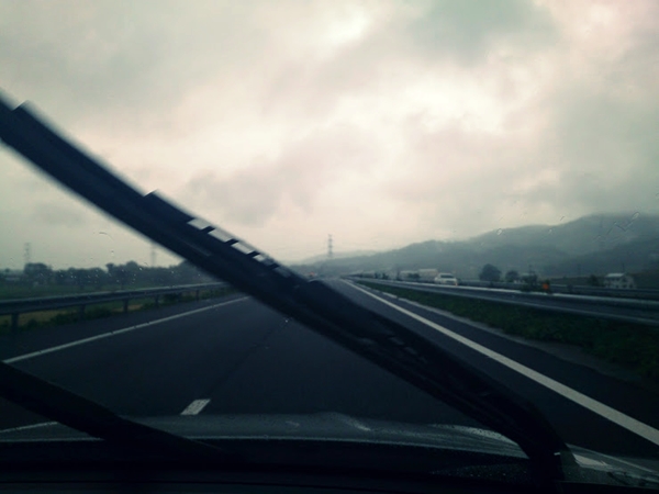 面白くもなんともないジョークをこぼしながら雨のドライブ