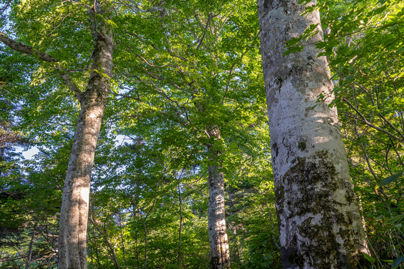 追いついてきた朝陽がブナ林を輝かせるシーンも楽しめた