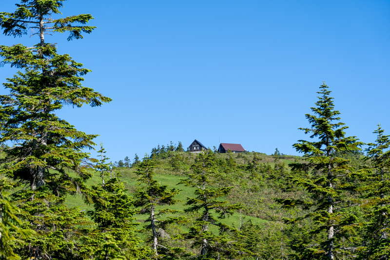 駒の小屋を見上げながら、あそこで休憩か、ここで座り込むか