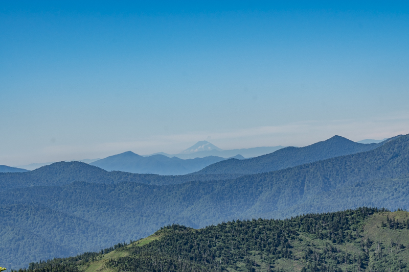 ふり返ると那須連山が薄く雲海状の雲に浮かんでいる