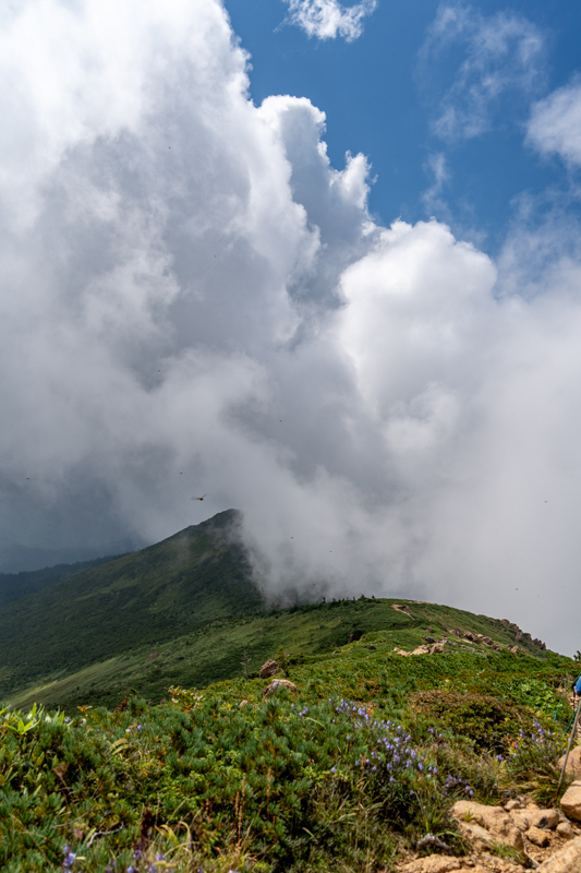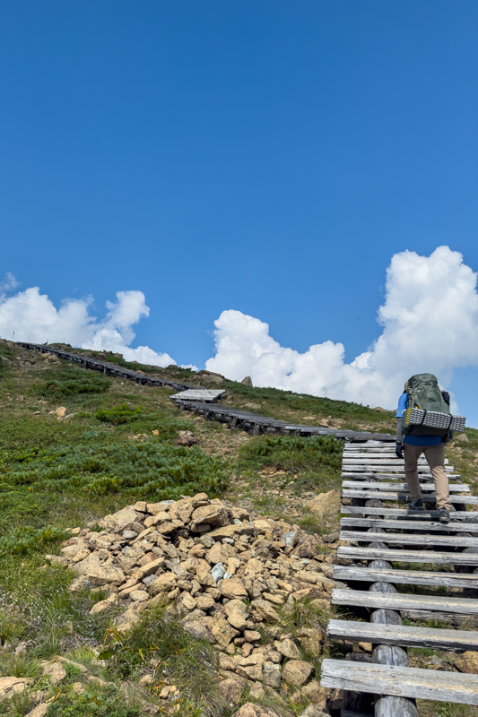 稜線が見えるようになると再び、じりじりと陽射しが照り付ける